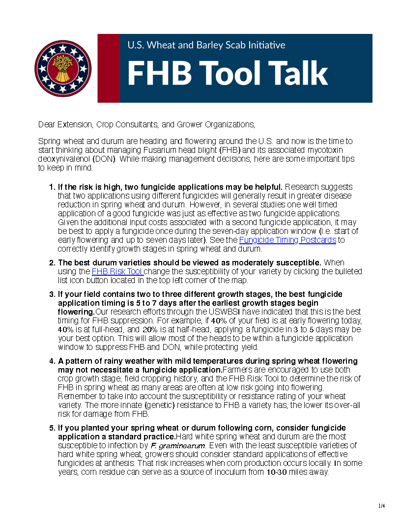 - March 28, 2024: FHB Risk Tool Active for the 2024 Growing Season